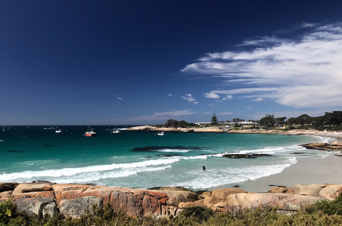 The Bay of Fires – nothing to do with stone colour, but named by an explorer who saw fire and smoke rising from Aboriginal settlements when sailing by 245 years ago.