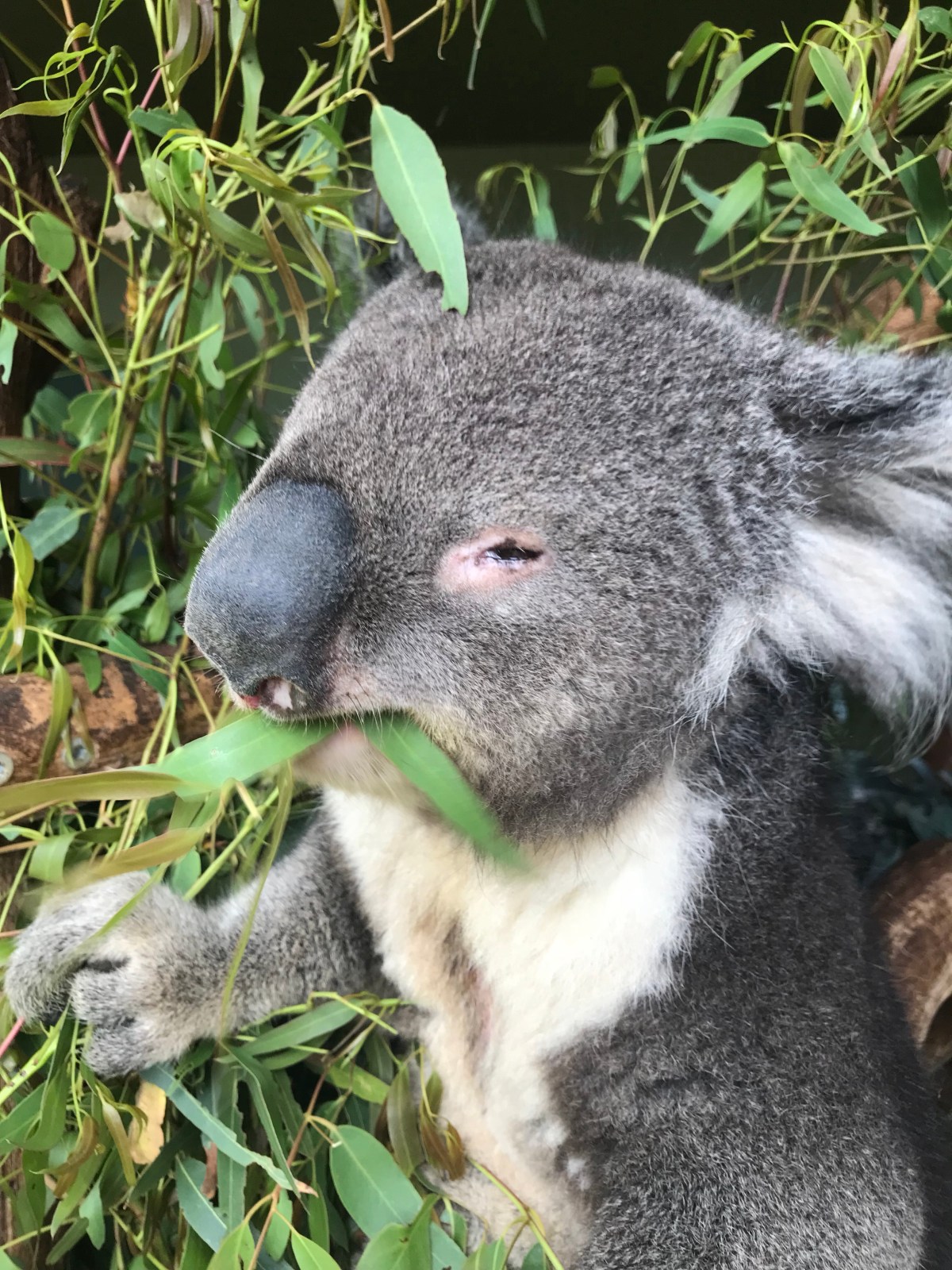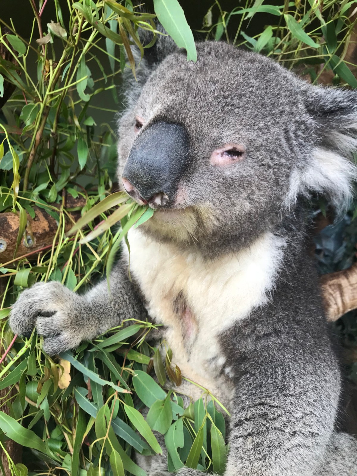 We moved on to the next animal zone. The one that got whoops of delight from the Chinese hordes with selfie sticks. It was Koala time – probably the equivalent of Panda Time in another time and place. We were introduced to the 3 inmates clinging doggedly to their shoulder-high perches and given the usual stories about them not being ‘bears’, not being ‘drunk’; and a new one on me, having a brain the size of a walnut. I know people who are in the frame for the last 2 characteristics I thought.
