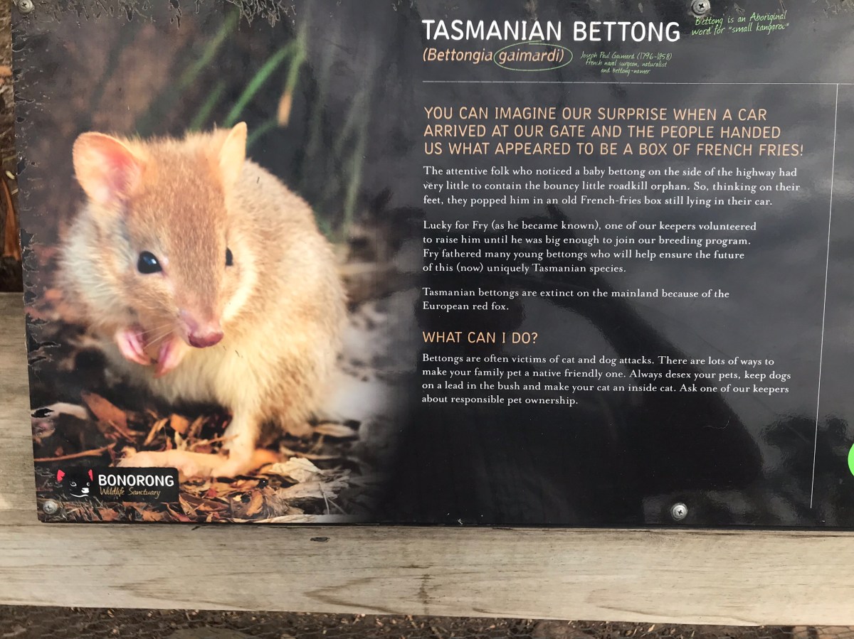 I remembered from the guide book and myriad of fliers available everywhere you go that these places are legion in Tasmania – and rightly so. They’re not zoos – no-one wants that tag these days; they are self-funded recovery centres for indigenous species that have been brought in by do-gooders or just the general public. We were told by the guide in Bonorong that unfortunately Tasmania has the unwelcome title of ‘Roadkill Capital’.
