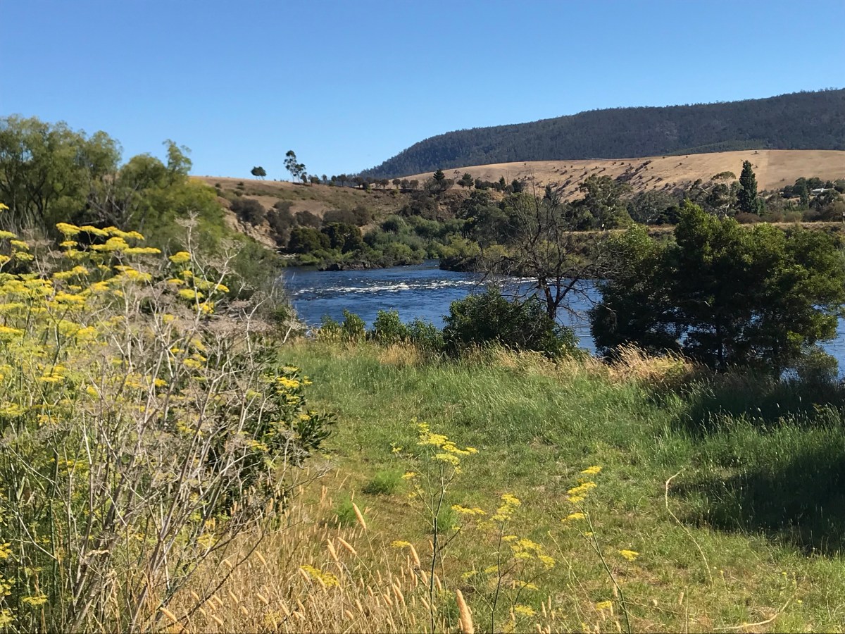 Above: Cleared farming country and the river Derwent. Good fishing advertised. Note the ‘alien’ fennel in foreground