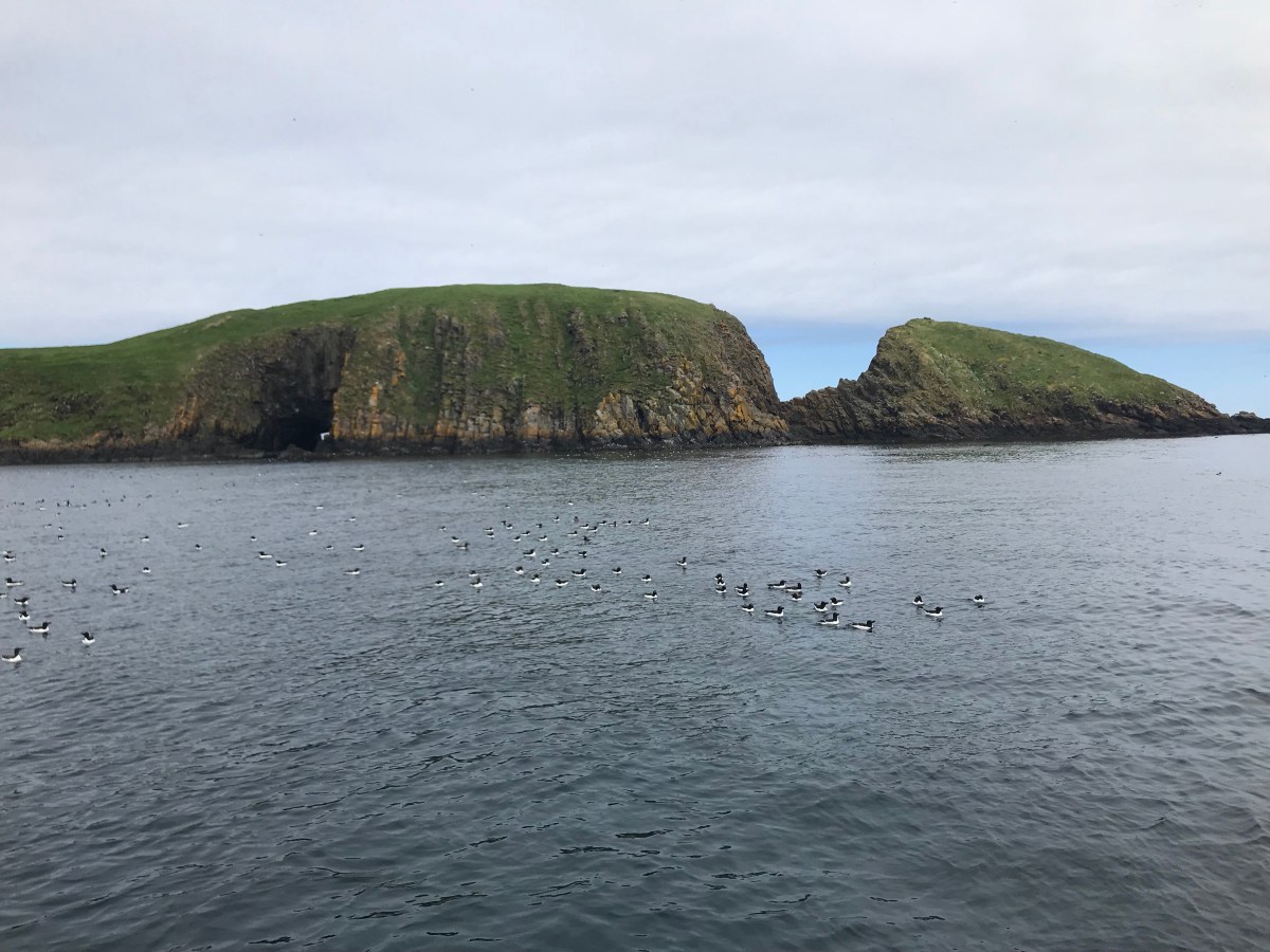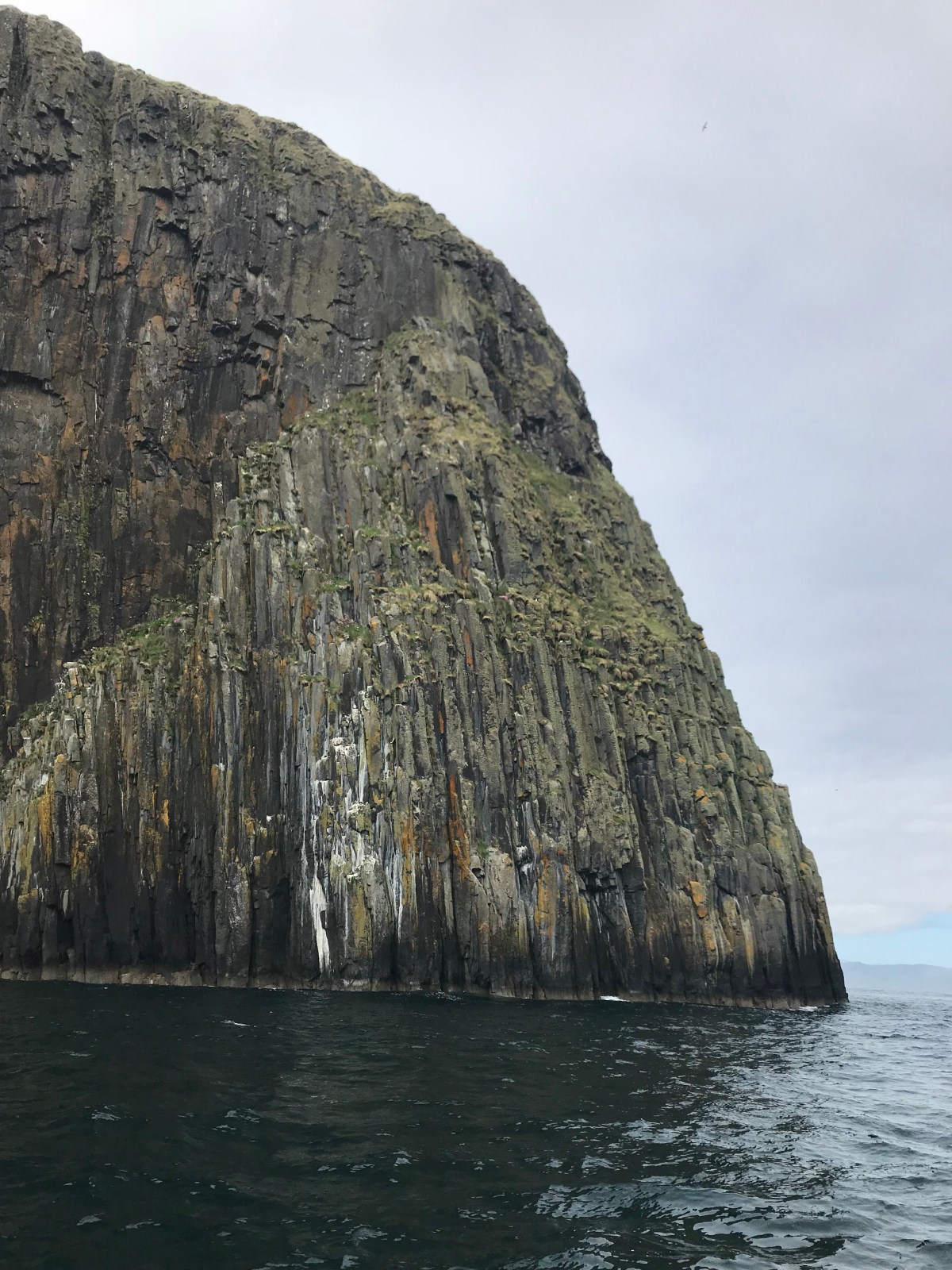 Puffins came and went, scuttling across the water escaping our bow wave as we approached the first rock outcrops – the Galatachans. Guano encrusted and alive with Auks – each making its own noise.