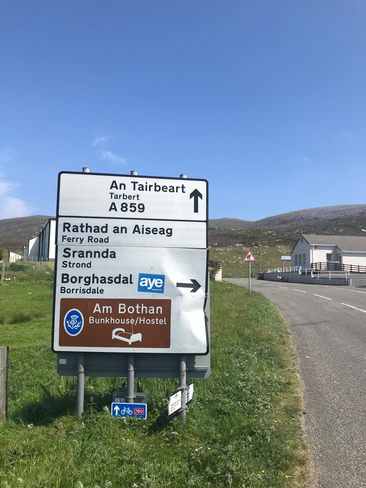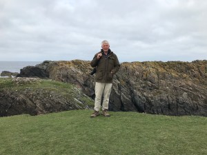 Day’s end at the Loch Erisort Hotel. An odd and really uninviting place despite a fair view. The bar only had one beer ‘on’; a bore that could be heard 3 rooms away, and only one proper seat – on which he was sitting. The chef[s] appeared to be two pensionable-age folk who could be best described as ‘dinner ladies’. Both came and went in the bar – pinnied-up; hatted with shower caps, peering at us as though we might create a bit of a rush if we all ordered simultaneously. We didn’t stay for supper, but you could smell that the deep fryer was already up to heat…