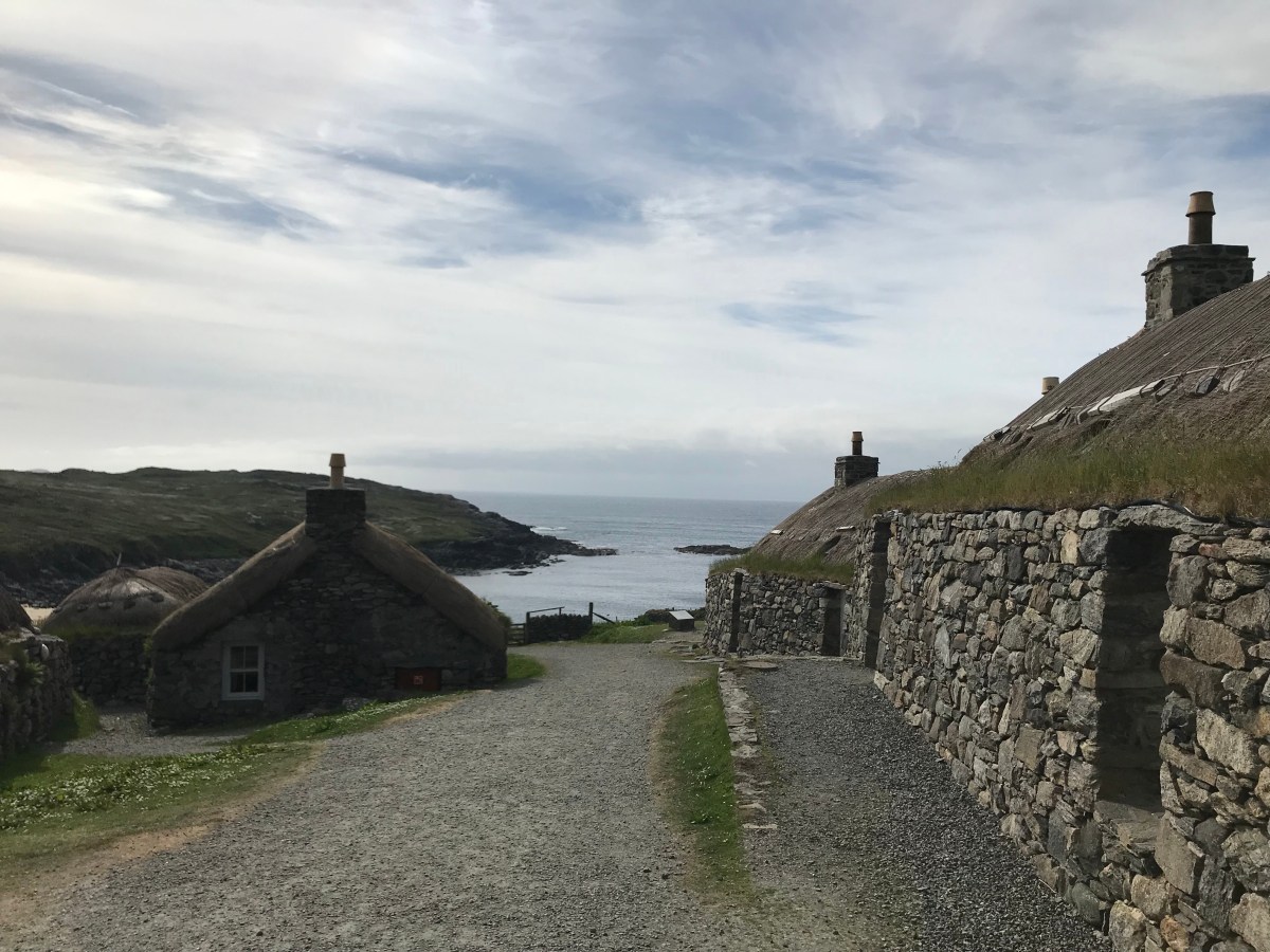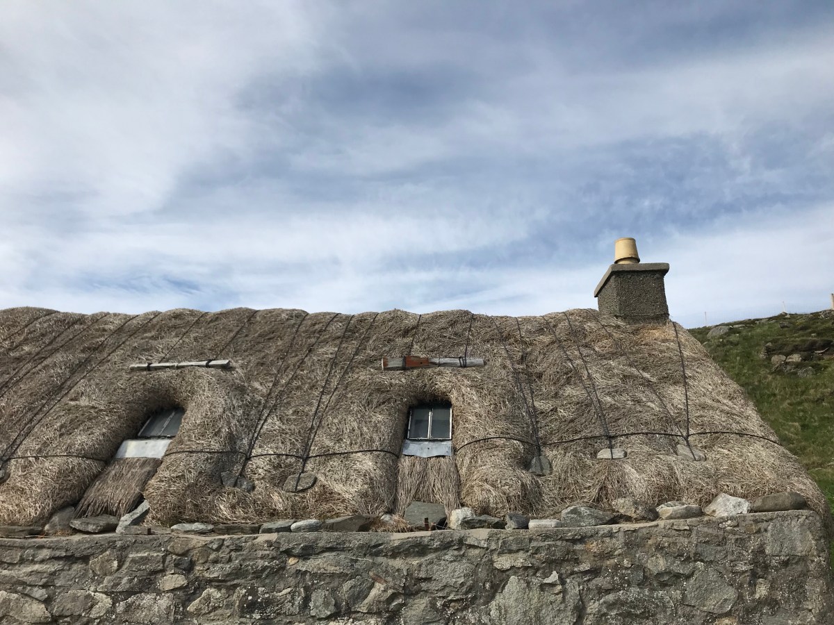 Above a living museum showing just how challenging it could be for months on end living in low houses with a roped-on thatch. Here, the traditional economy has always been the small-scale production of the world-famous tweeds.