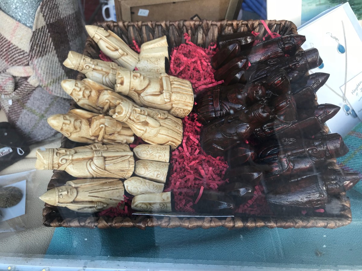 The Uig Chessmen. A replica set of the extraordinary C19th find of dozens of Walrus ivory pieces that date back to the 12th Century. Rated [by experts not locals and Wikipedia] as probably the most significant find of its kind ever made.