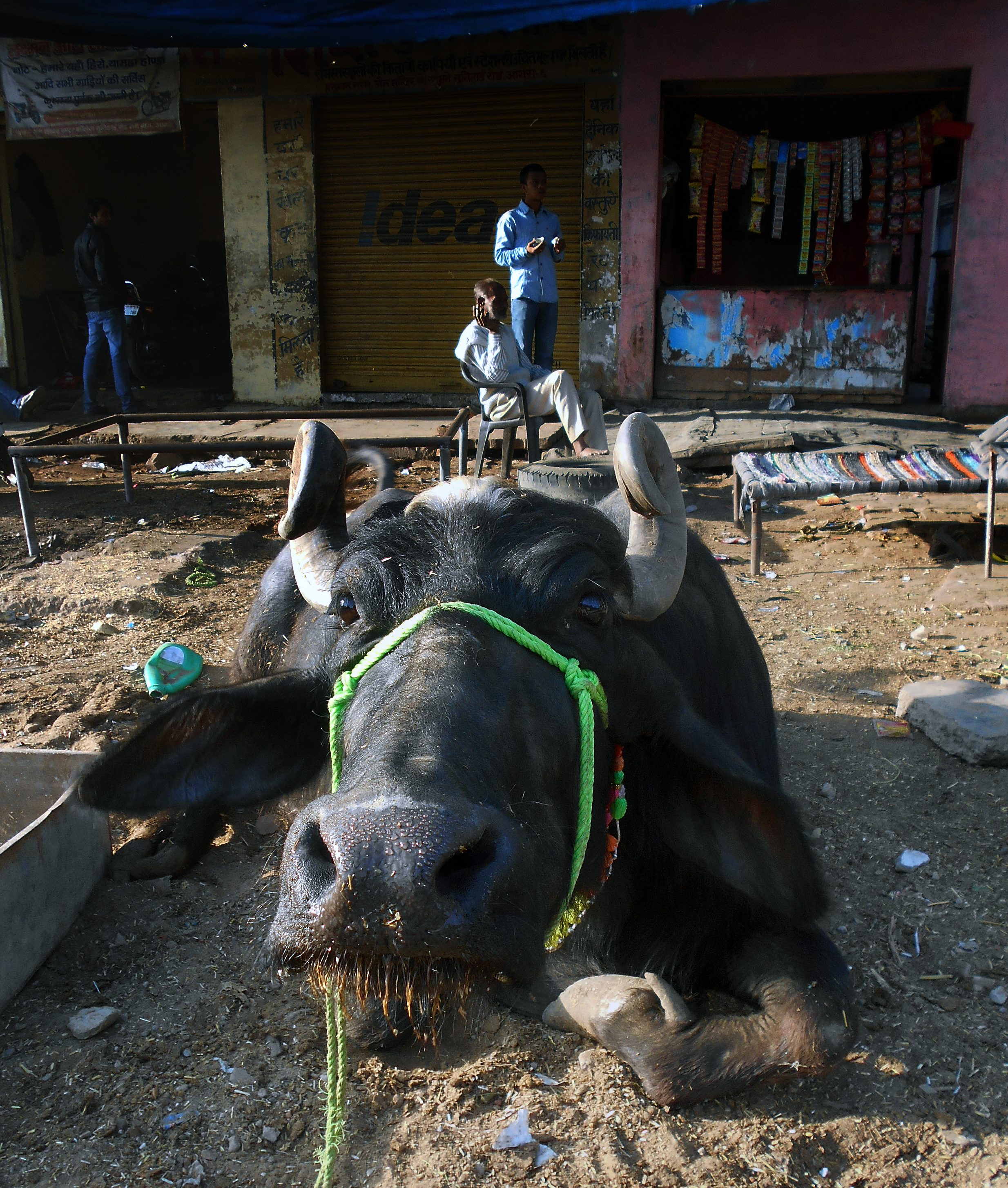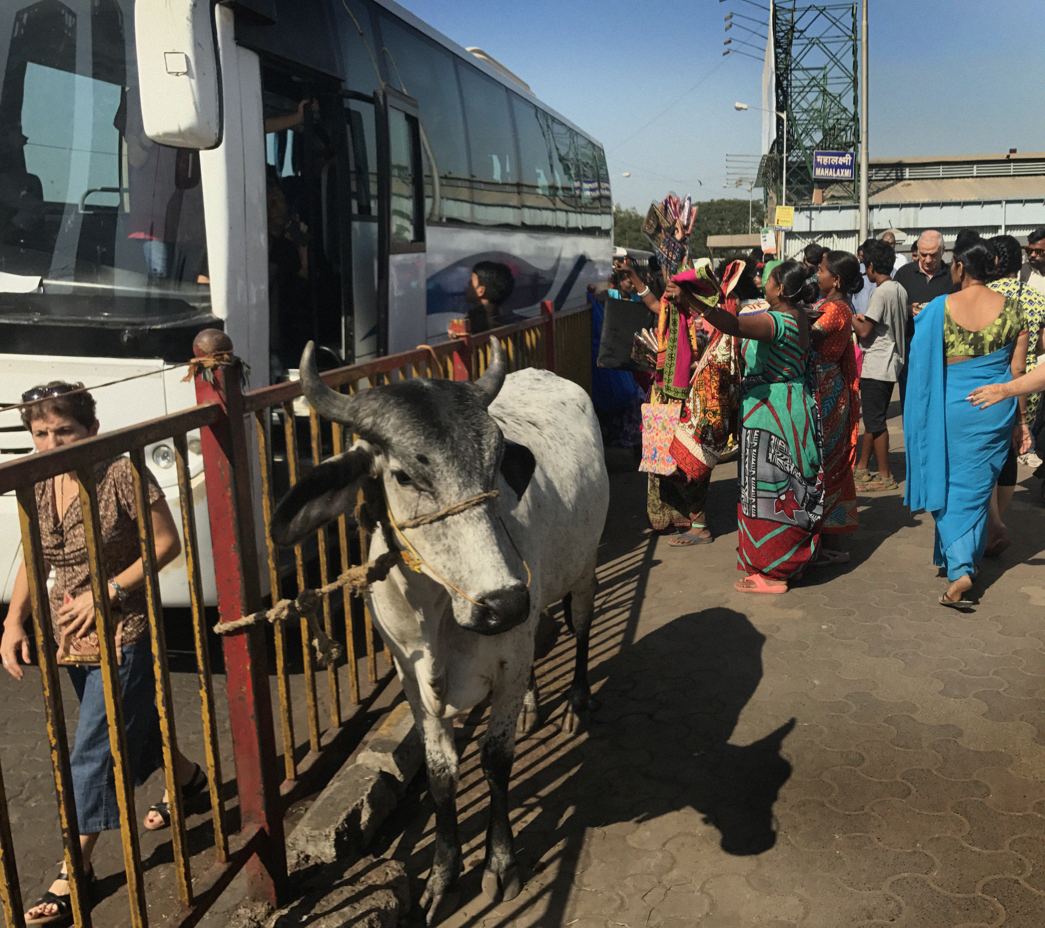 Below: Cows enjoying immunity. Why? I still ask. No fencing, no restrictions. We had one in the fast lane of the Delhi/Agra motorway. Cow pats everywhere, traffic hold-ups and no fresh milk to be seen. At night part of the smog was from fires made of dried dung, all in a capital city. Here the Mayor of London would have his work cut out trying to enforce his ‘clean air policy’.