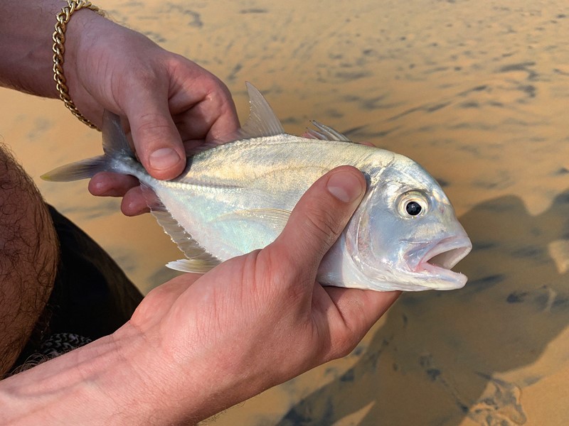 Beach casting elsewhere. Butterfish returned [to sea] despite the protests of the gathering locals.