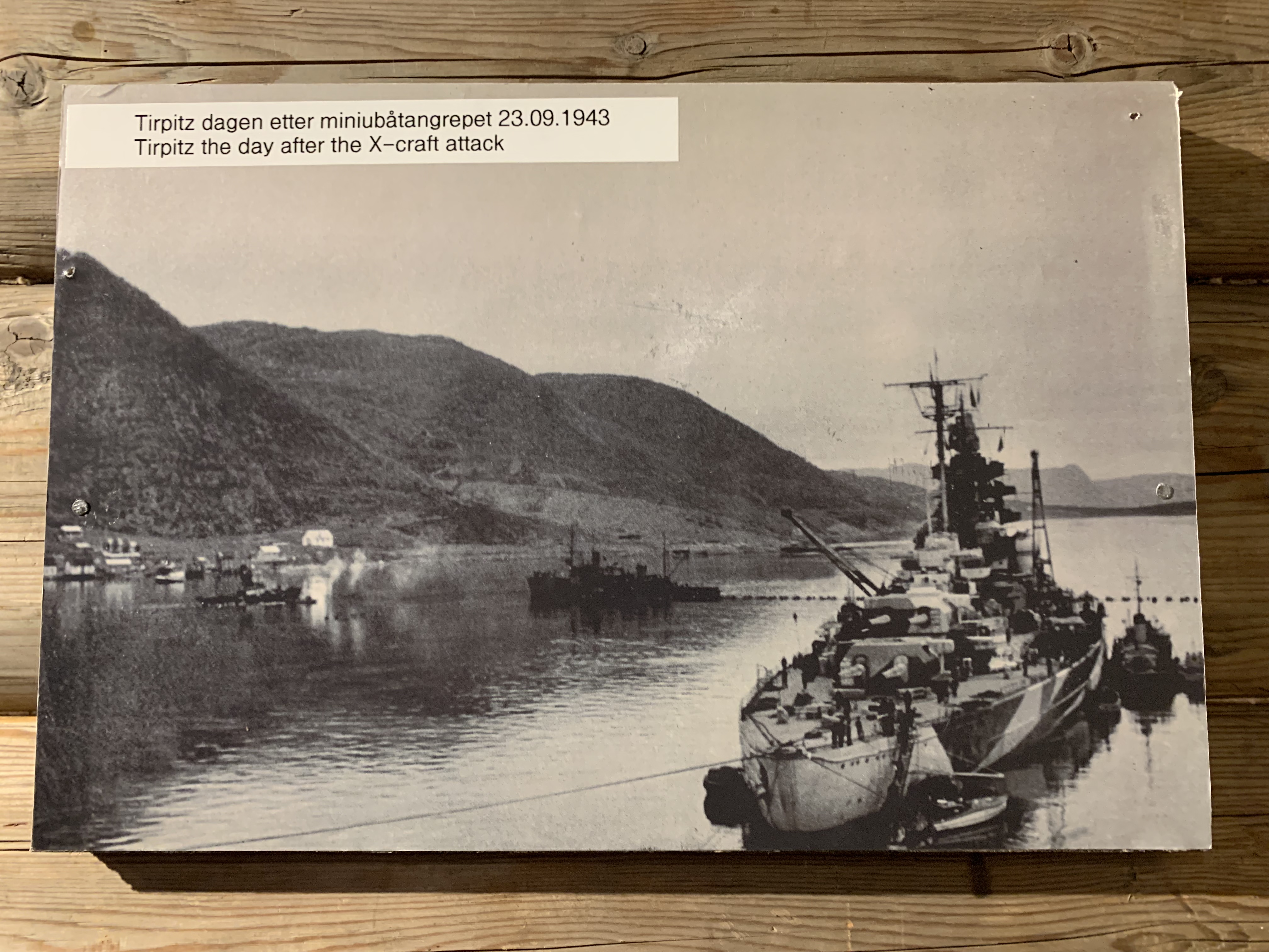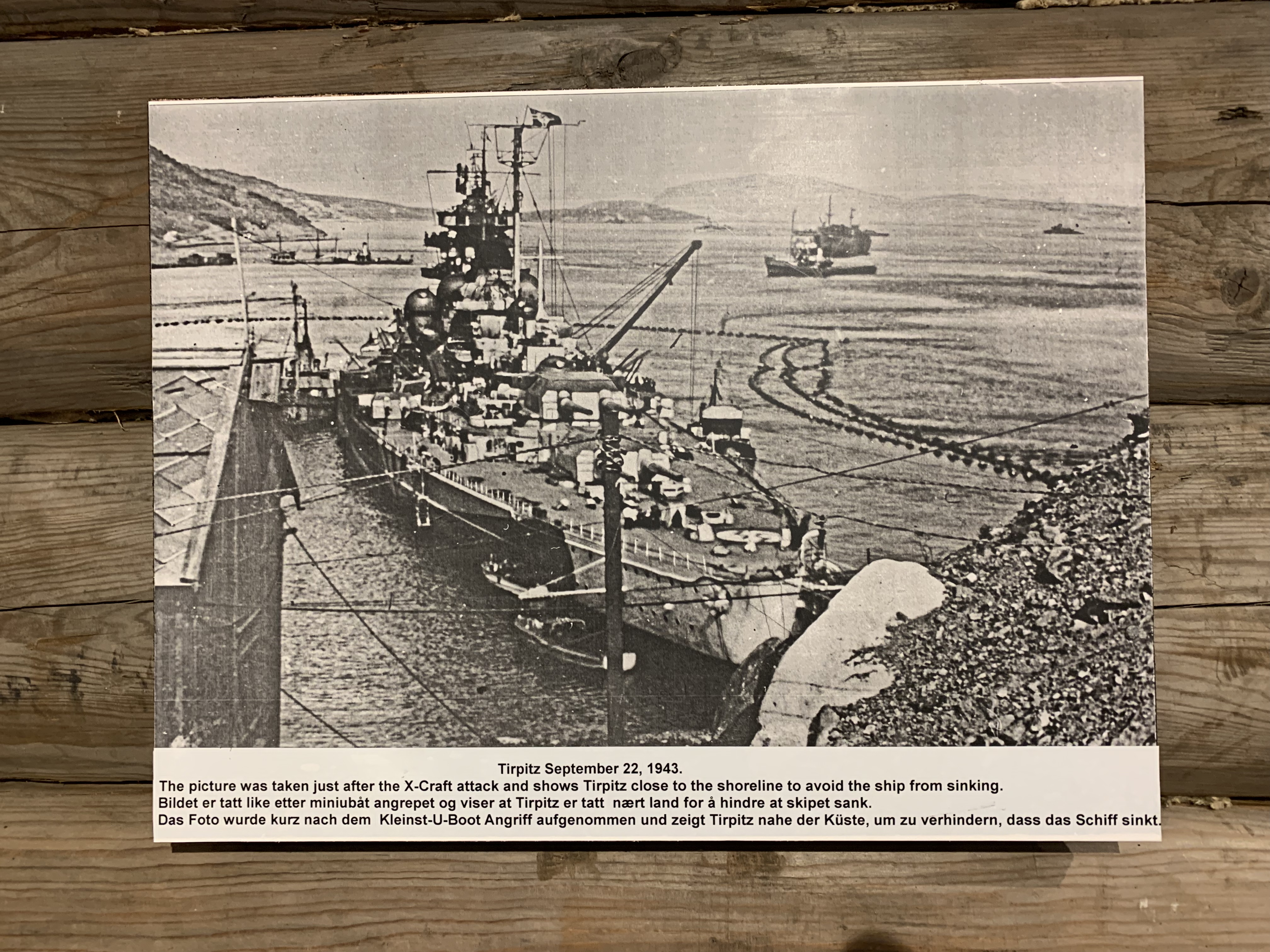 At the bottom of my iPad page there was mention of The Tirpitz Museum – a place dedicated to the story of one of the world’s largest ever warships. The museum was located 15 km away in (effectively) someone’s house. Generally it had received good reviews apart from a recent snipe by someone saying 100 NOK was expensive. The reviewer had been swatted back by the owner telling the world about the museum getting no local authority subsidy. [100NOK = +/- £10].