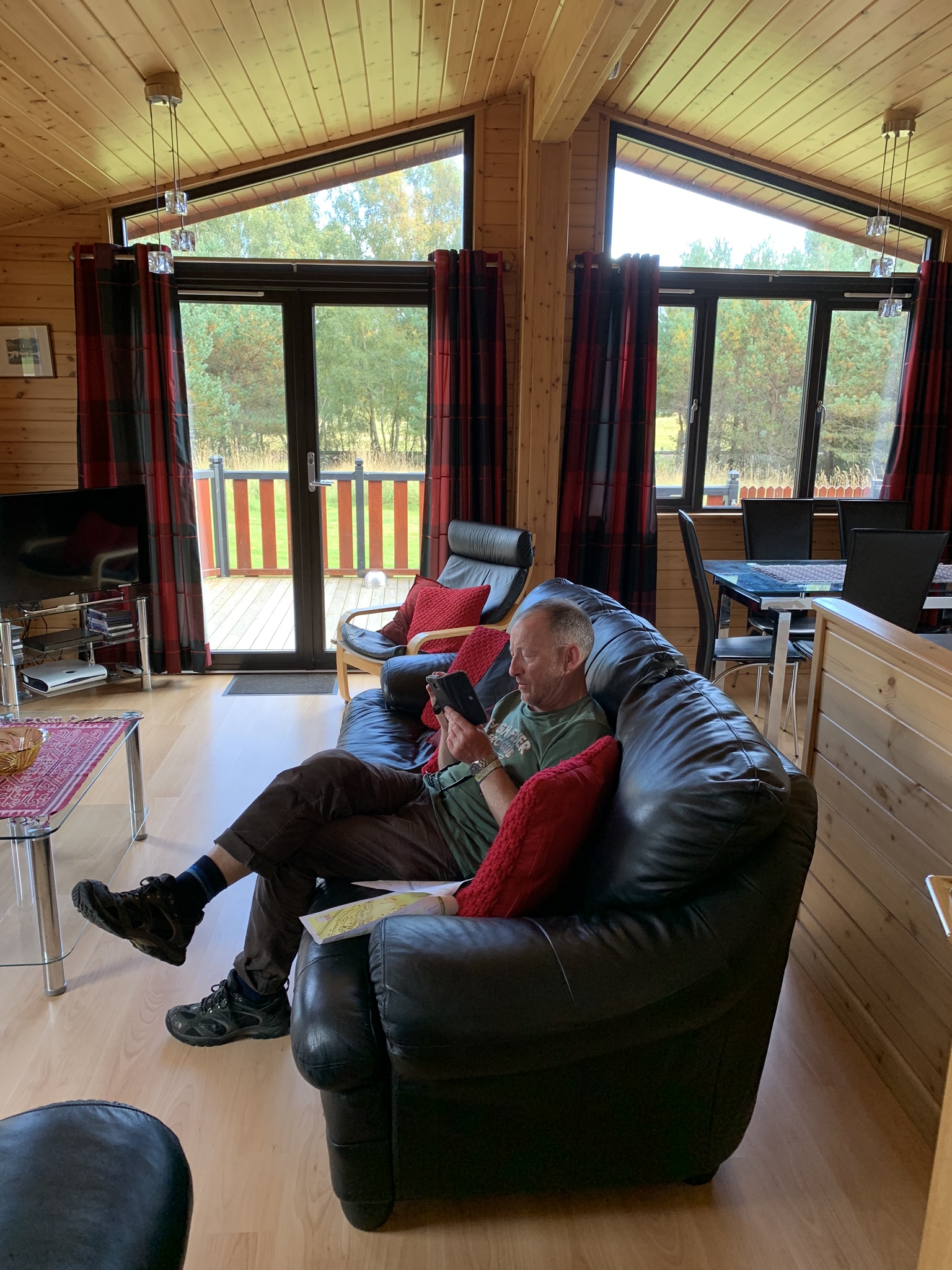 Above: Things you do/need/crave after a night in the open. A massive heated cabin was agreed upon after our southbound trip through Lairg, Bonar Bridge and Inverness.