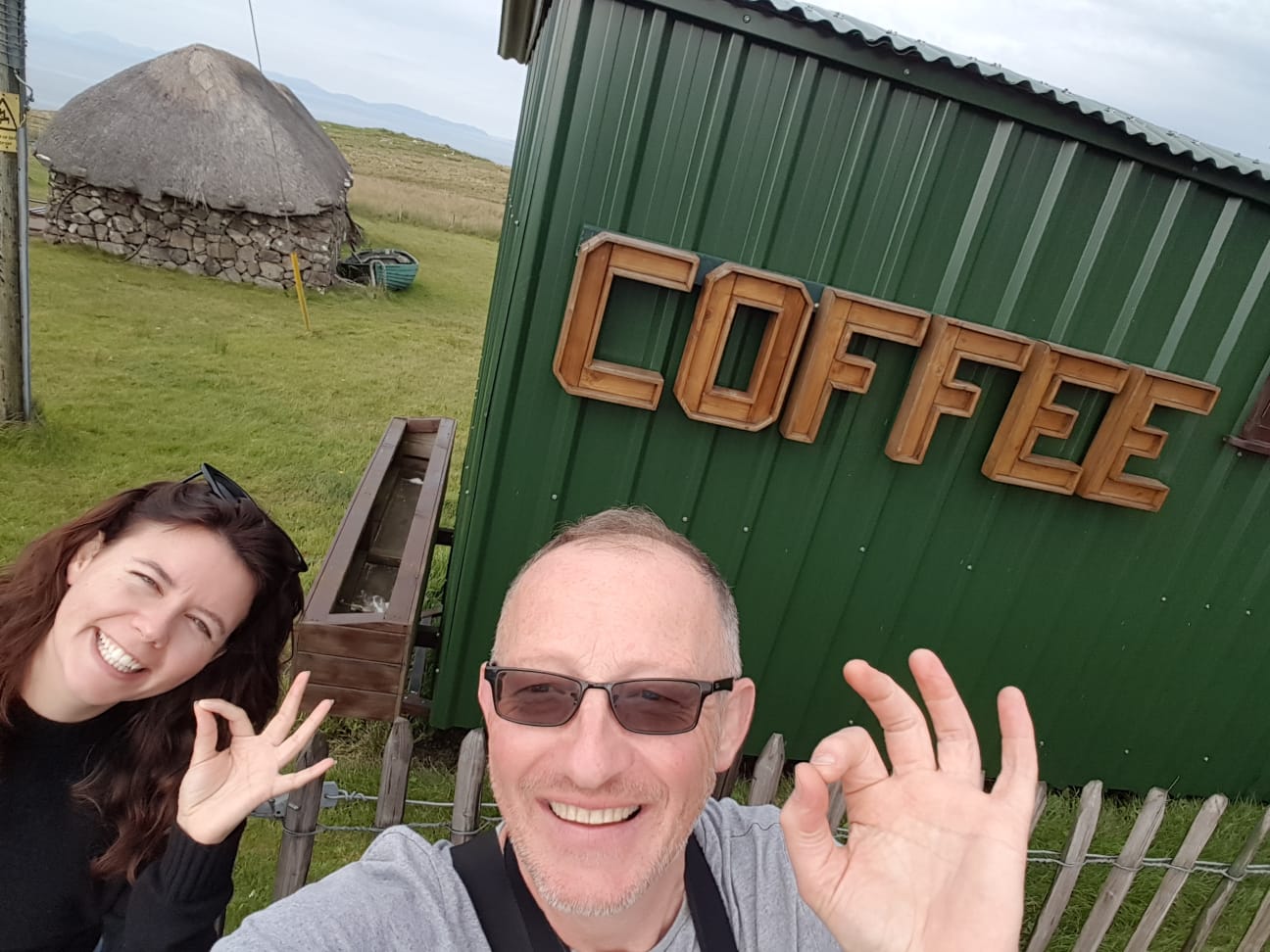 Some way up to Loch Assynt, just a wee way short of Lochinver, Terry wanted to do this… An ‘Aunt’ had painted a watercolour of an ‘Assynt View’ some 60 years ago. An image that had bewitched his family for decades as it hung in their house. Our ‘Quest’ was to find the exact spot that Aunty had sat all those years ago – and here we are – T comparing his family heirloom with the exact view?