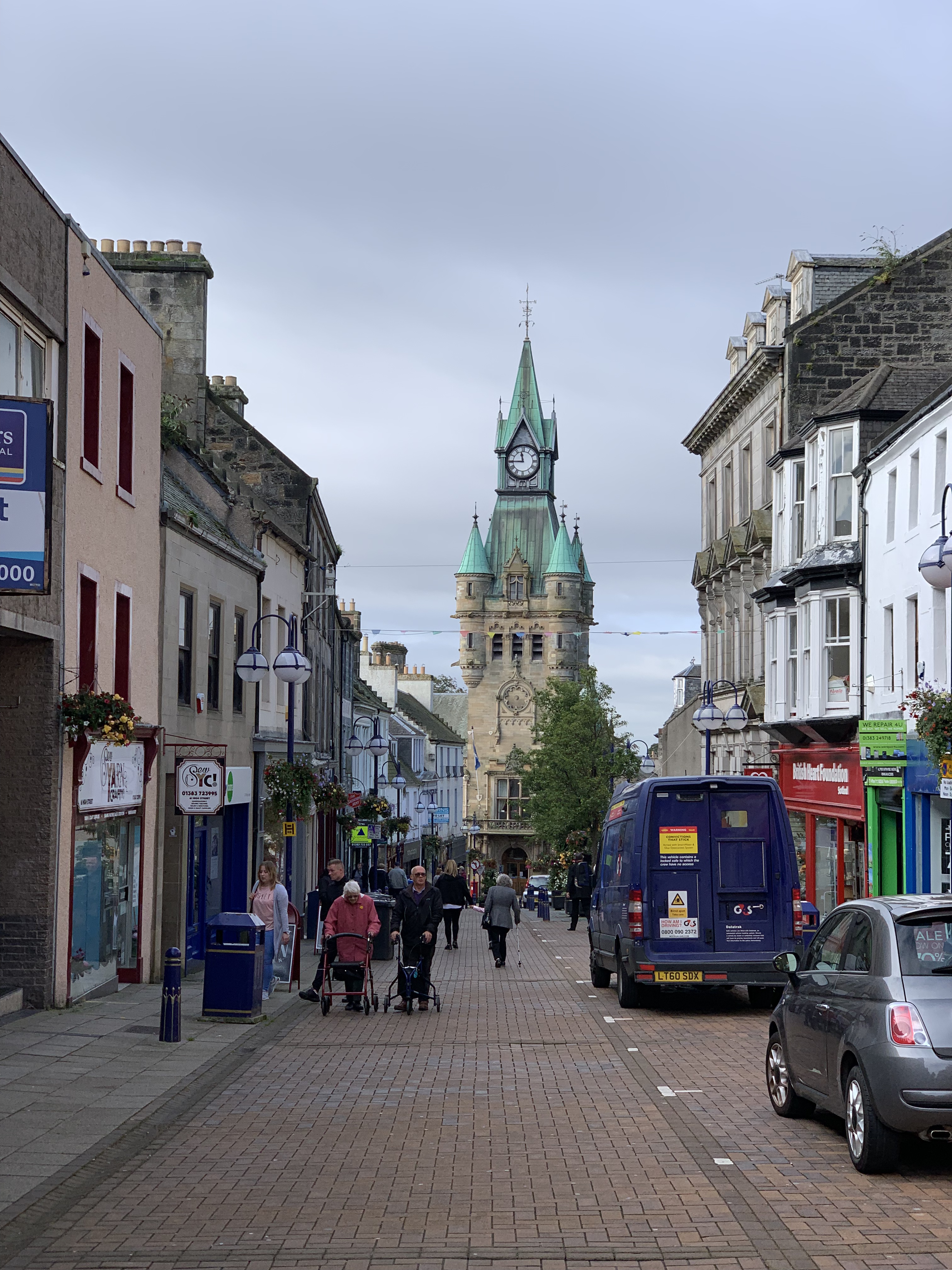 Above: The historic town of Dunfermline, nestled on the northern bank of the Forth. Erstwhile home of almost a thousand years of Scottish kings; but now, like every town in the UK, showing signs of high street change.