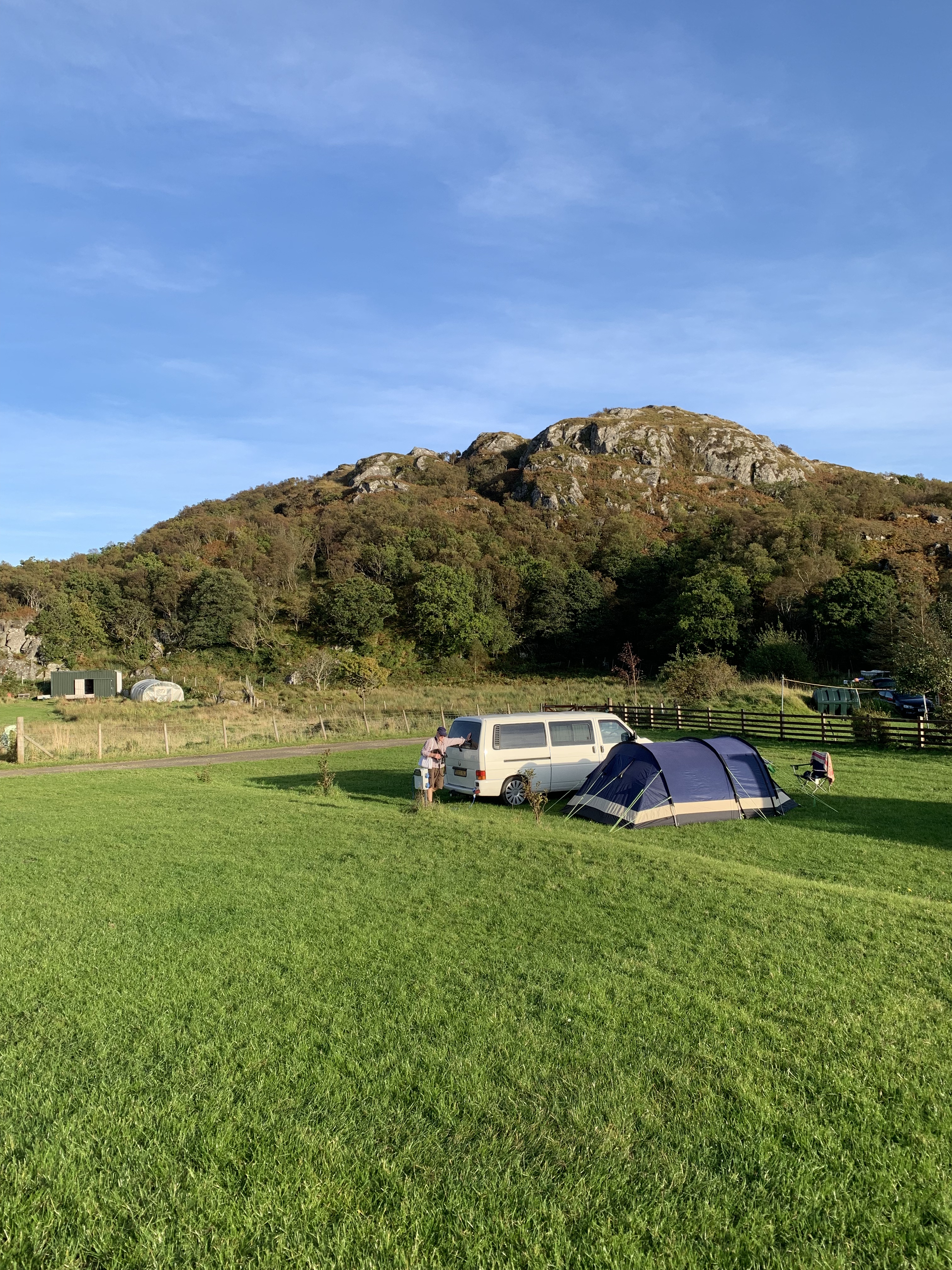 Below: The site at Ardtoe. A cowpat field with a functioning Portaloo.