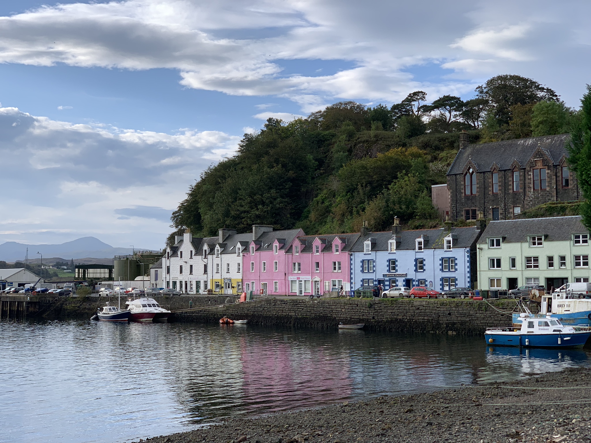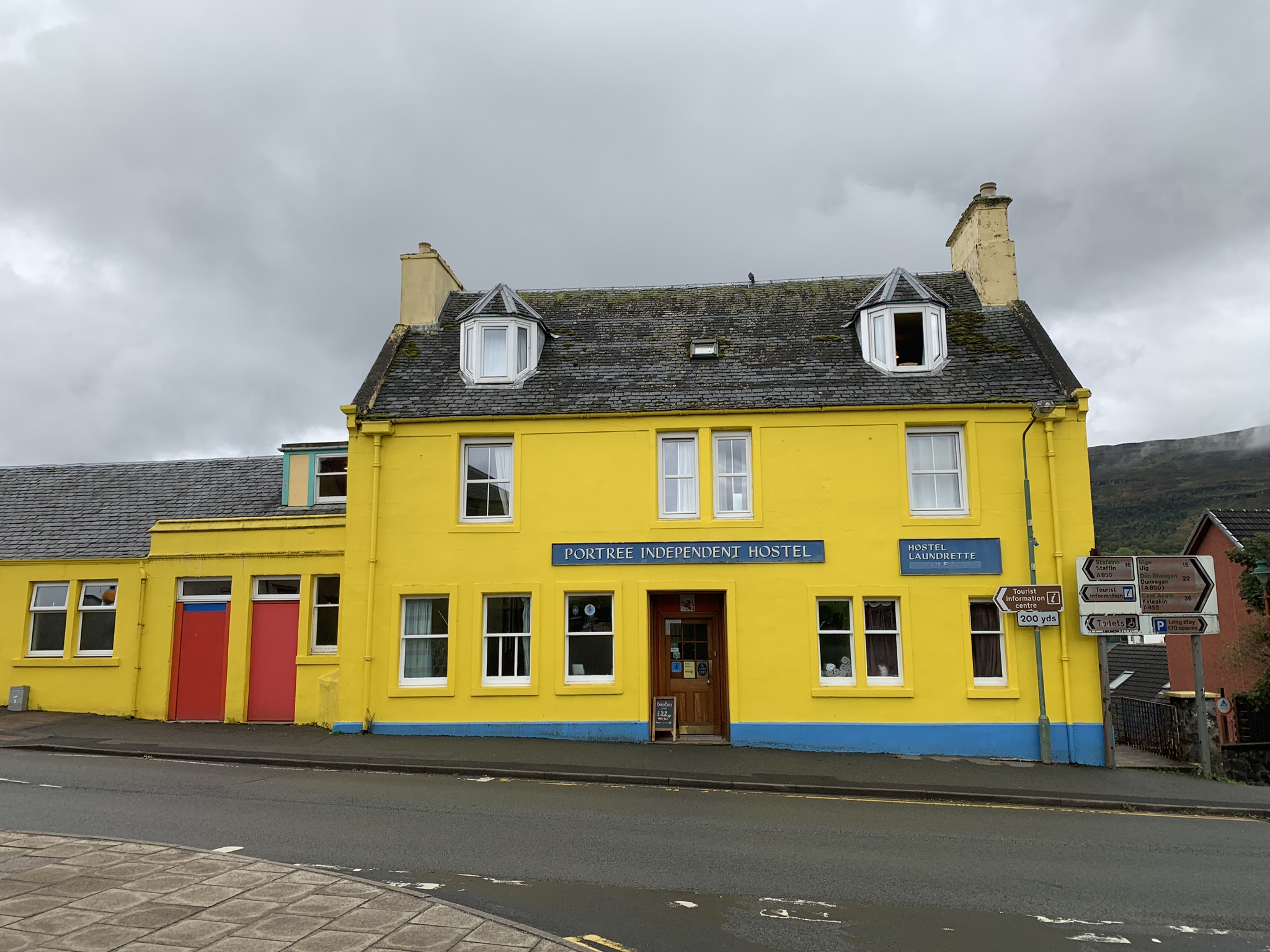 Colour in Portree. A tasteful view of the harbour front, and the garish yellow of the local Youth Hostel. £22/night for a bed in a dorm. I think those days are behind me.