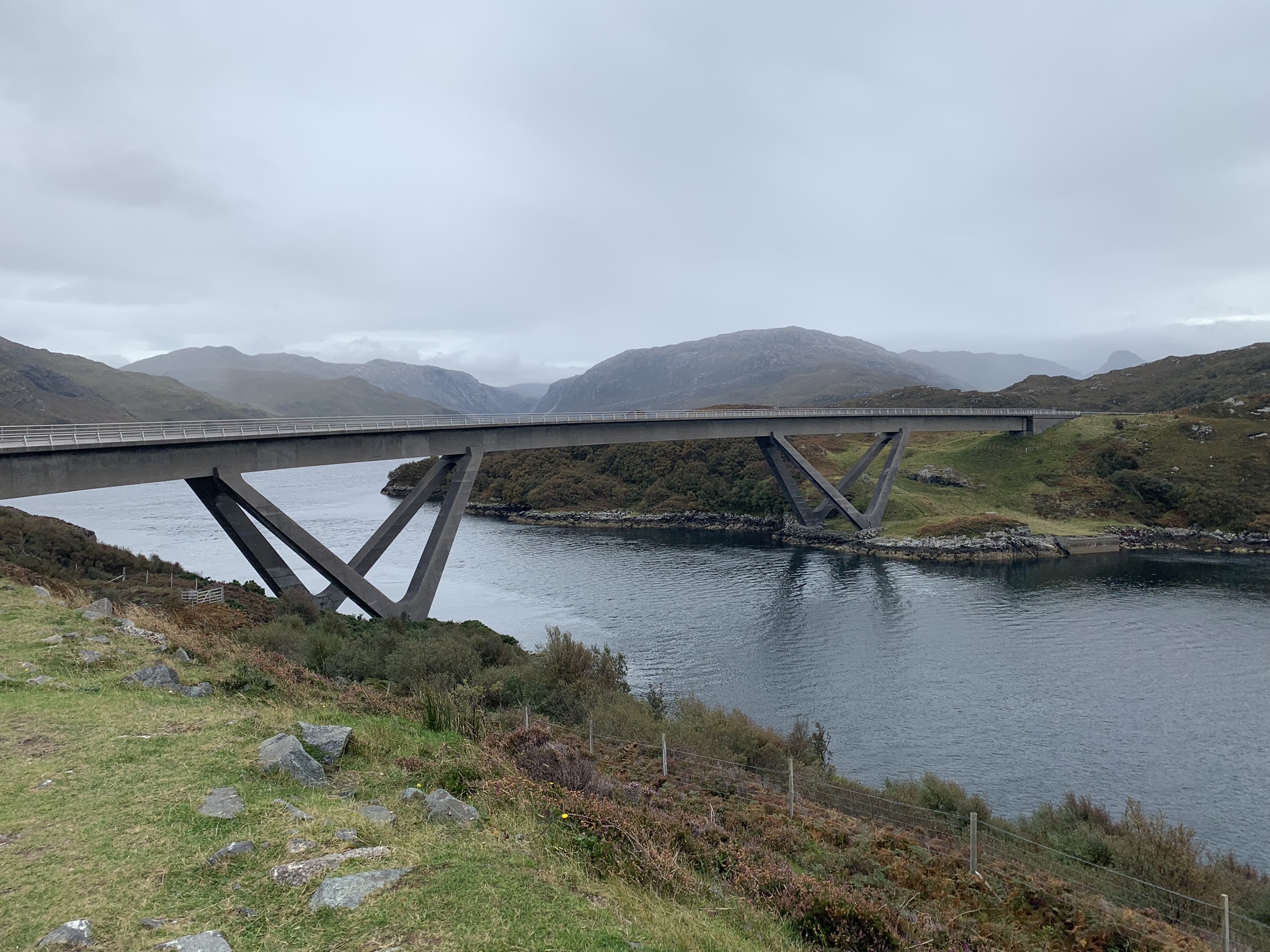 2 shots from ‘memory lane’ – Clachtoll beach where I first camped ‘en famille’ as a small boy in 1965, and the Kylesku Bridge at the north end of the Drumbeg peninsula. Back in ’65; and indeed until 1984 when the bridge was completed, the little ferry crossing under the new bridge was an infamous Scottish Bottleneck for the growing North – South route. In ’65 I remember we waited and waited for the ferry on our day trips out from nearby Clachtoll.