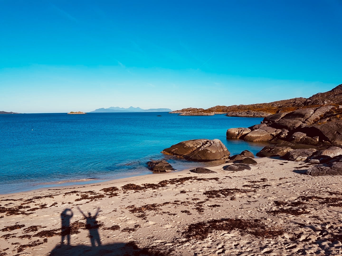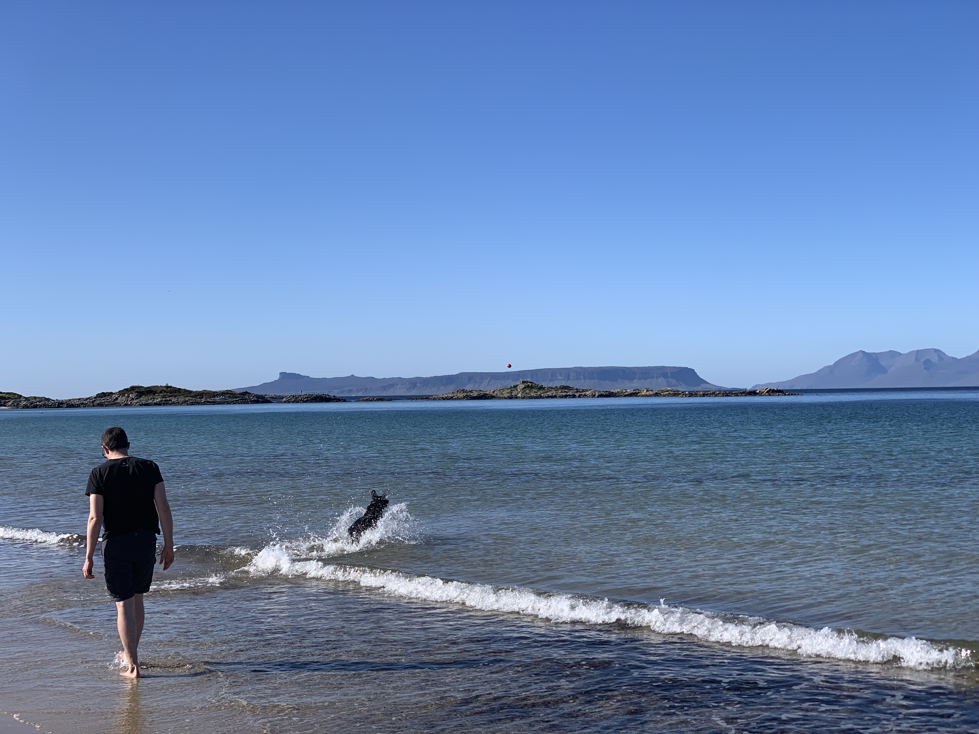 Views along Glenuig and (above) a cloudless day makes the isles of Rhum and Eigg look like they are sitting on a sheet of polished glass.