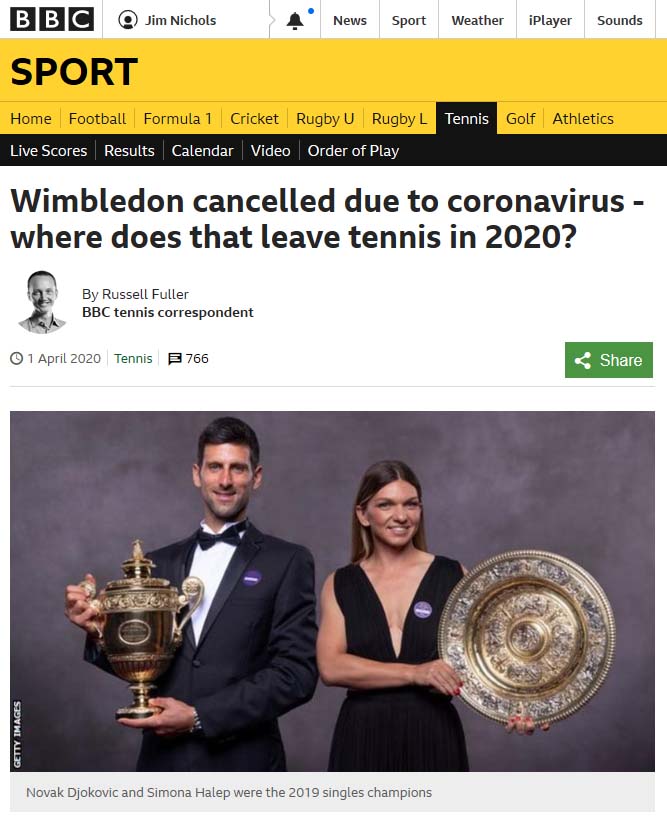 It took until April Fools’ Day for the UK authorities to announce that Wimbledon was off and there was no chance of the Edinburgh Festival in August. We are all becoming jaded by the endless list – but not surprised. All sports [and events] news now seems to revolve around the financial viability of what has been left behind.