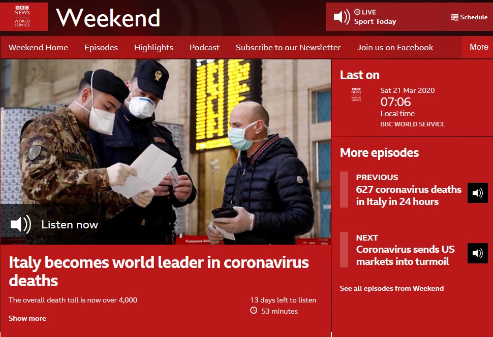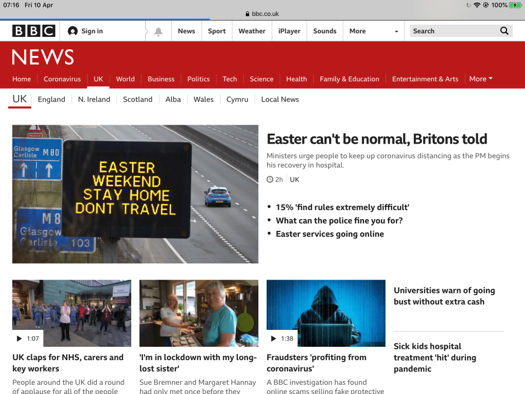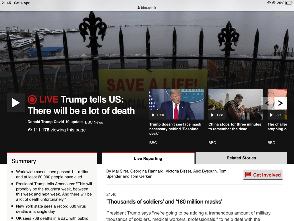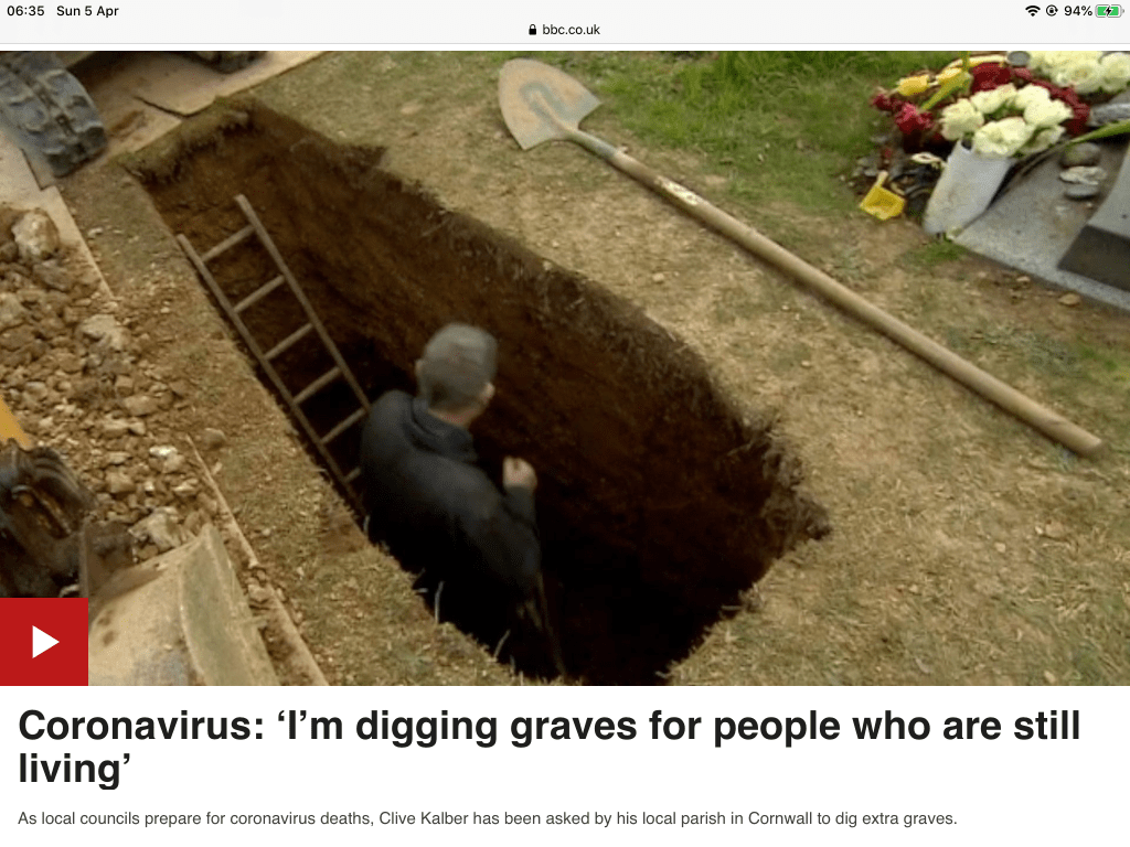 In America, things seem less calm. Another week of contrary announcements from Mr Trump and his Team, and the country’s death toll has now exceeded that of Spain and Italy. In fact I think I read that New York City’s was now at the head of the leaderboard.