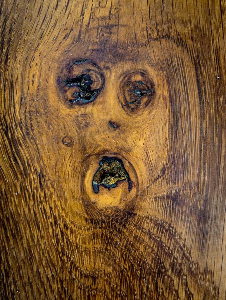 A tree to end a story – a face in a piece of oak I was cutting